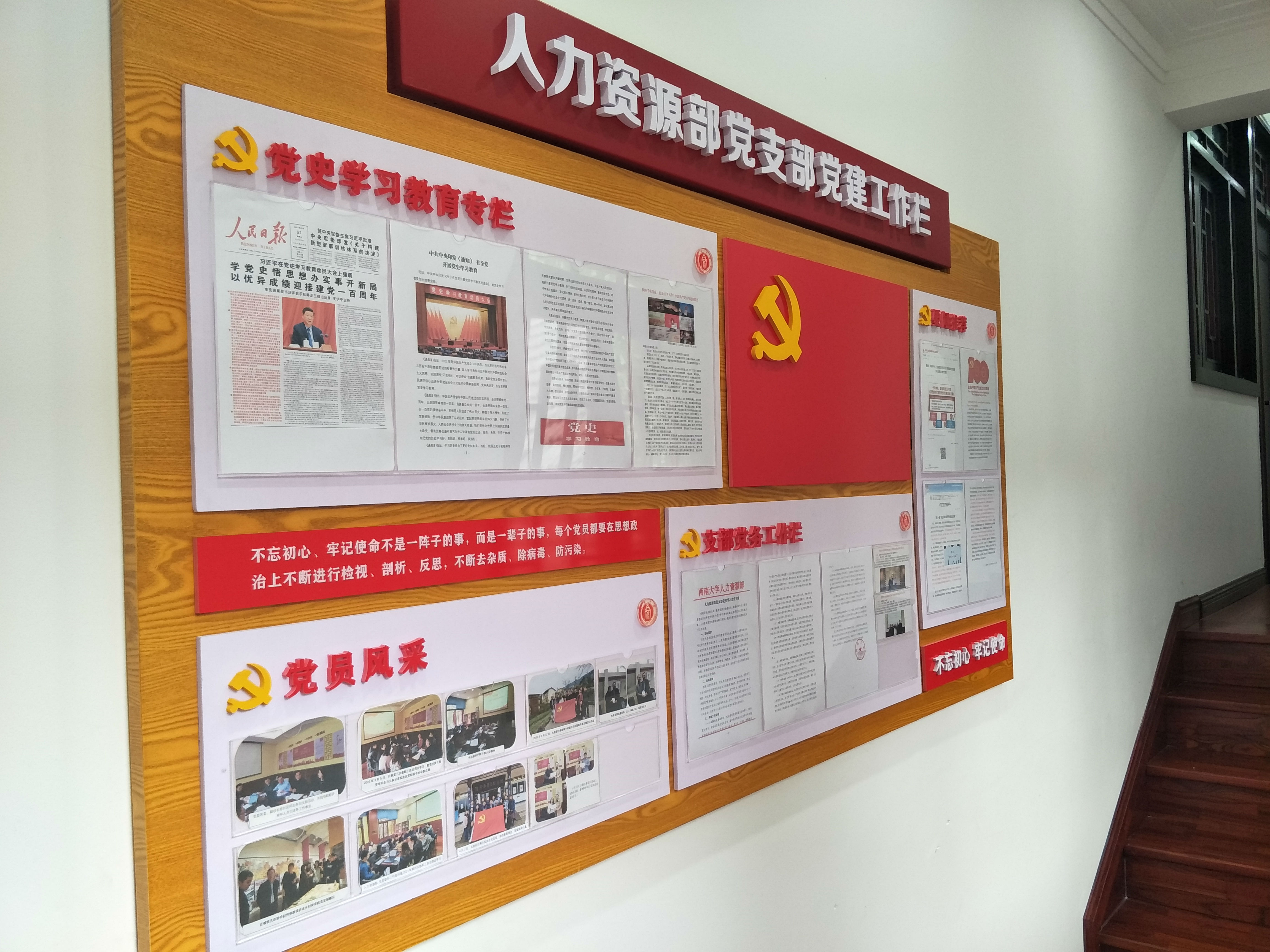 为贯彻上级党委关于党史学习教育的精神,不断加强党建宣传阵地建设,pa视讯官方集团党支部领导高度重视,研究并支持在部门202会议室通道旁醒目位置开设支部党建工作专栏。工作栏由“党史学习教育专栏”“党员风采”“支部党务工作栏”“要闻推荐”四个板块组成,目前已完成各板块内容的建设工作,后期将根据工作需要不断更新维护。