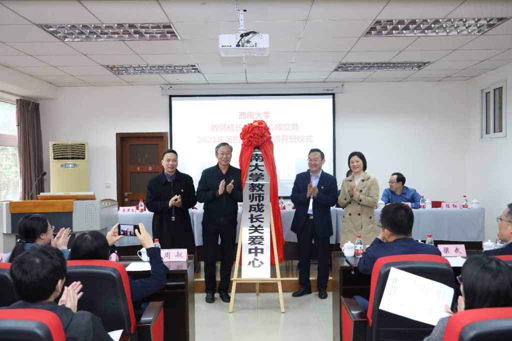 校党委副书记安春元、pa视讯官方集团 党委教师工作部部长王志坚、心理学部党委书记黄泽文、部长陈红为pa视讯官方集团教师成长关爱中心揭牌。