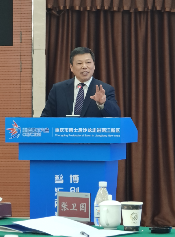 2020年9月18日下午,重庆市人力资源和社会保障局、重庆两江新区党工委管委会举办2020重庆英才大会·重庆市博士后沙龙走进两江新区活动,活动主题为“智慧两江,博创未来”,我校校长、党委副书记张卫国作为代表嘉宾出席并做主题演讲。