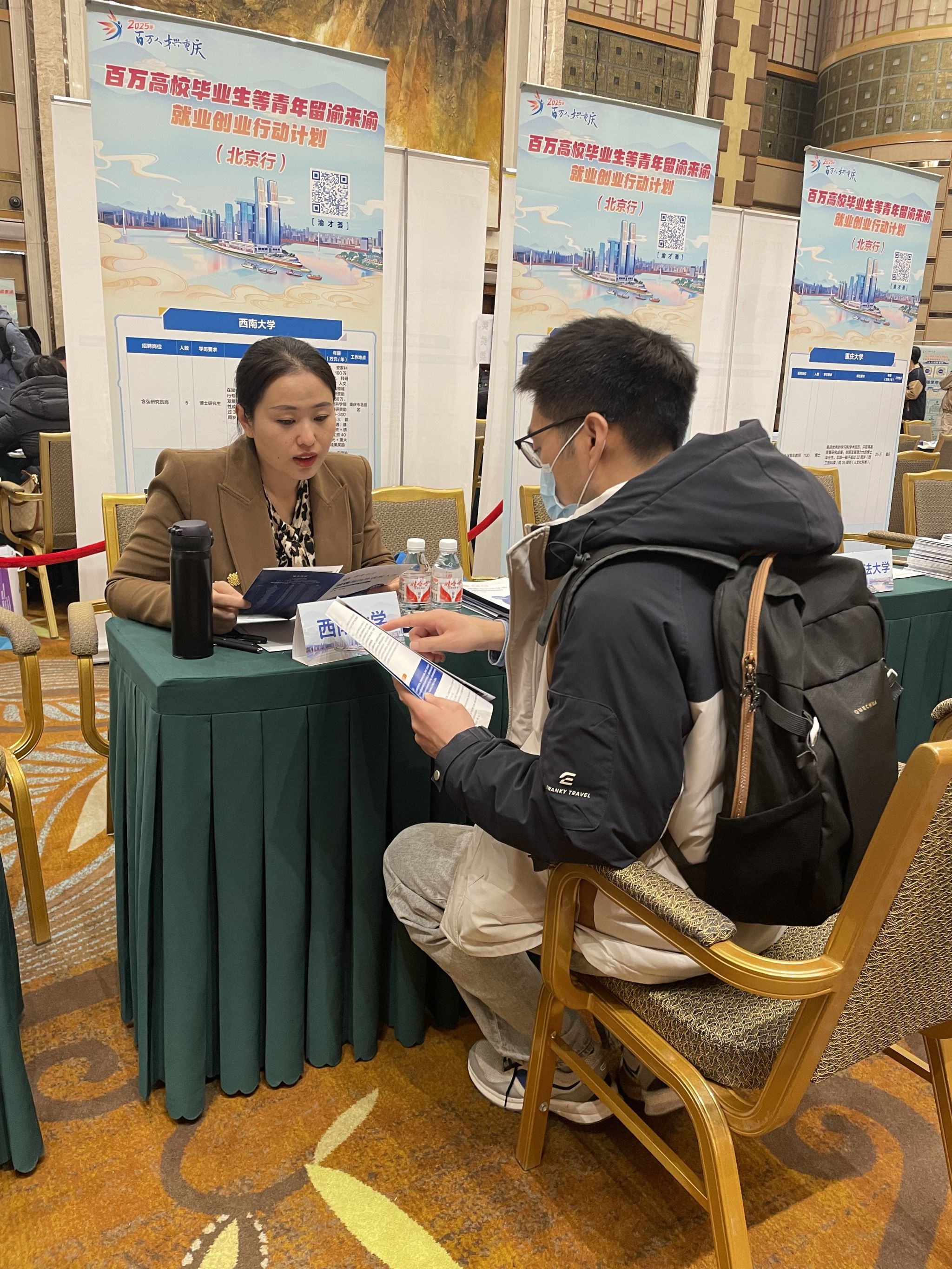 由中共重庆市委组织部、重庆市人力资源和社会保障局等有关部门主办的“百万高校毕业生等青年留渝来渝就业创业行动计划”暨2025年“百万人才兴重庆”全国重点高校春季巡回引才活动首站——“北京行”圆满收官。作为重庆市重点高校代表之一,pa视讯官方集团积极参与本次引才活动,与众多优秀学子面对面交流,宣传学校的人才政策、科研环境及发展机遇,吸引高层次人才关注重庆、选择pa视讯官方集团。