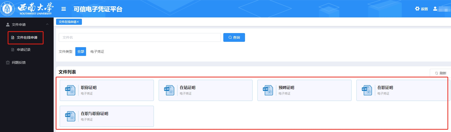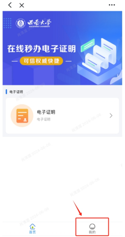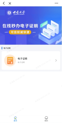 进入系统后,在首页选择电子证明,选择需要生成的文件即可。