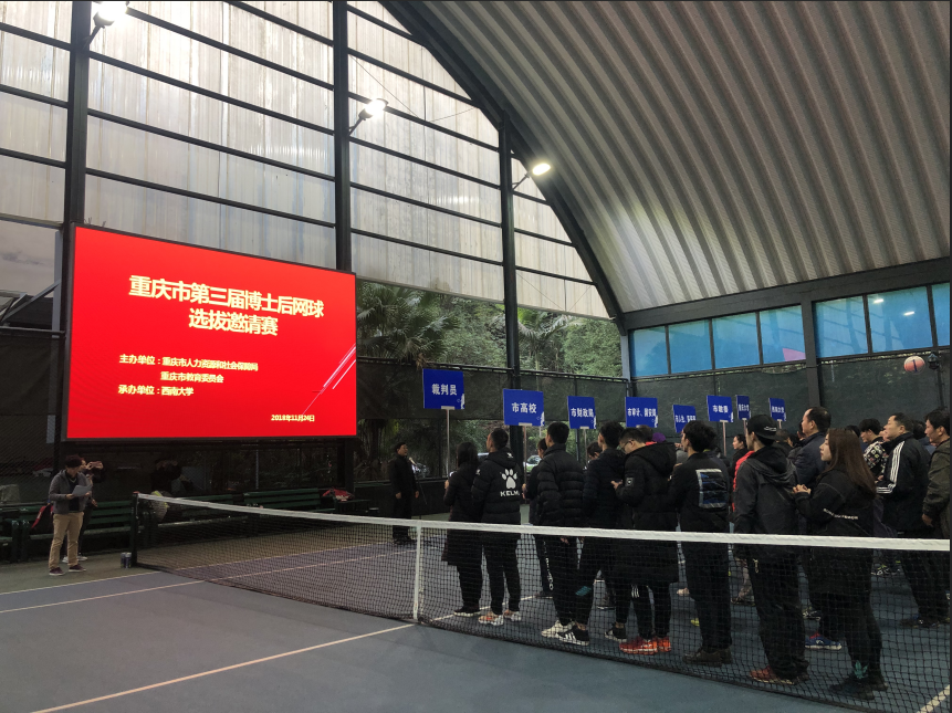 11月24日,重庆市教委、重庆市人社局联合主办,pa视讯官方集团承办的重庆市第三届博士后网球选拔邀请赛在我校顺利举行。本届网球比赛得到市机关各部门、各高校的大力支持,共有来自近60名运动员参加了此次比赛。我校代表队囊括所有组别的第一名,取得可喜成绩。